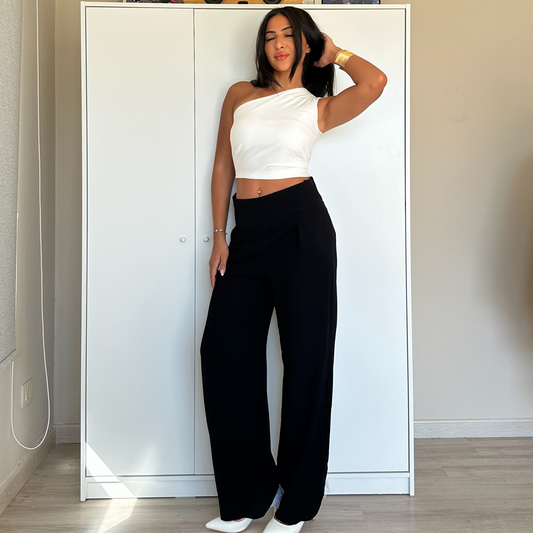 Black Wide Waistband Wide-Leg Pants