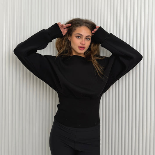 Black Elastic Waist Sweatshirt