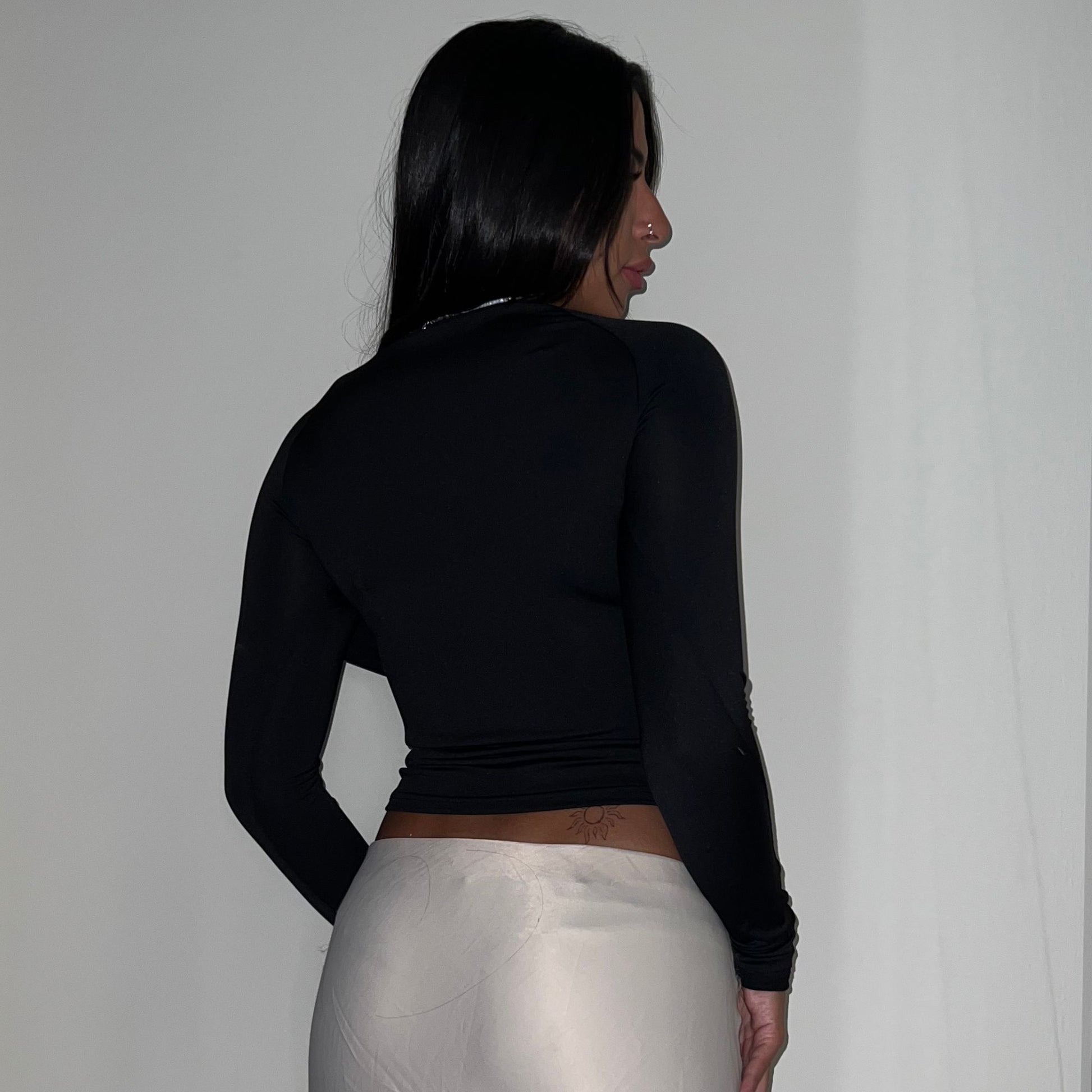 Black Long -Sleeve Ruched Top