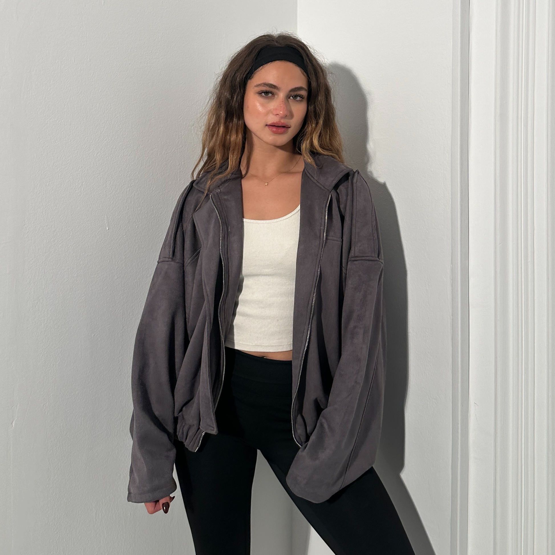 Its deep grey tone adds a sleek, contemporary feel — perfect for layering over neutral basics or pairing with statement accessories. With clean tailoring and understated detailing, it’s a wardrobe essential that speaks volumes through simplicity.