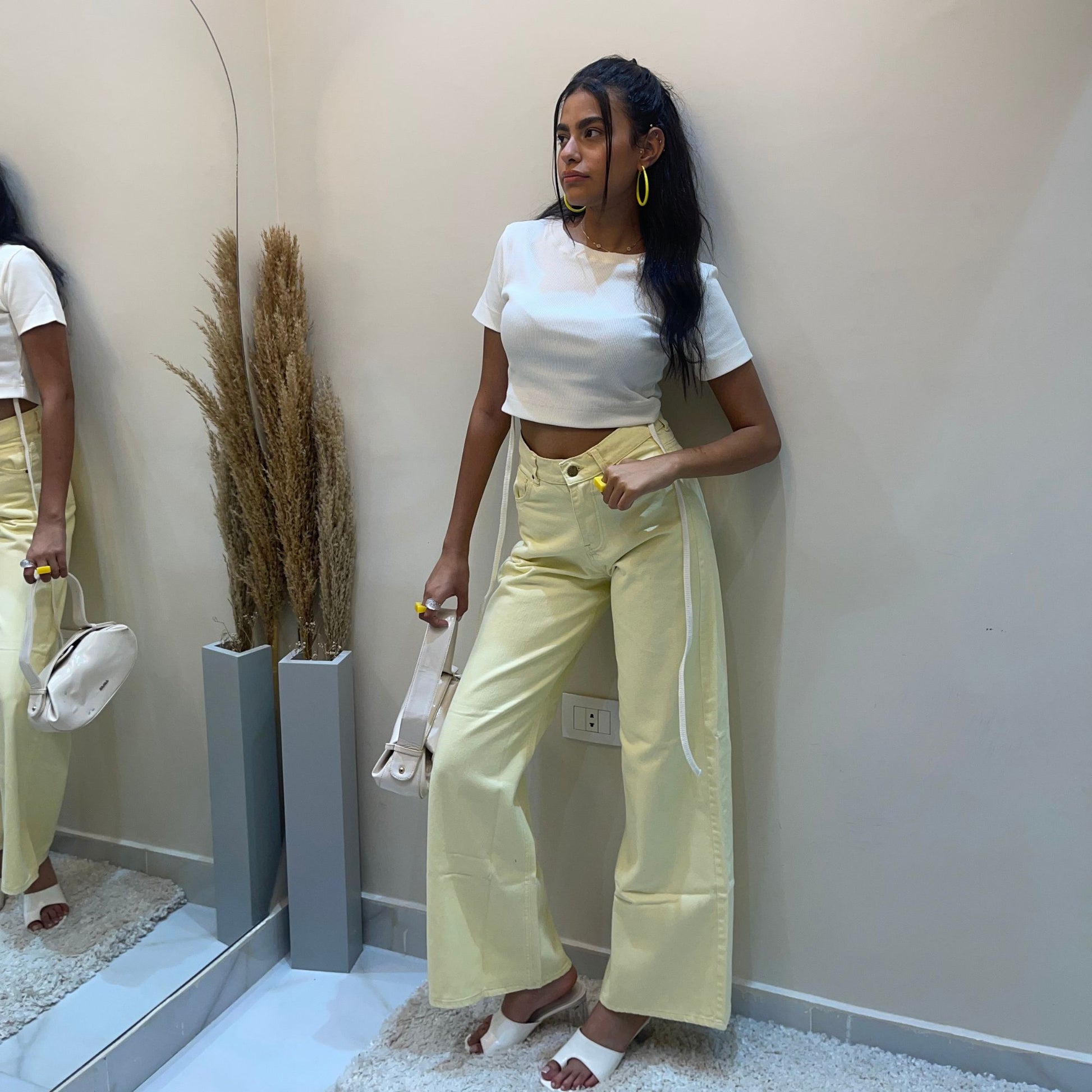 Wide leg yellow pants.